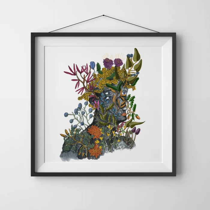 Drawings made with markers, dry and watercolors, then printed in giclée quality on 210g matte Hahnemühle enhanced paper. This technique; Art printing can capture 98% of the original colors, and these colors are preserved for about 200 years in a healthy way. *Will be sent by roll without frame. *Print size is 33x33. *Frame allowances are given extra. *Not dimensioned