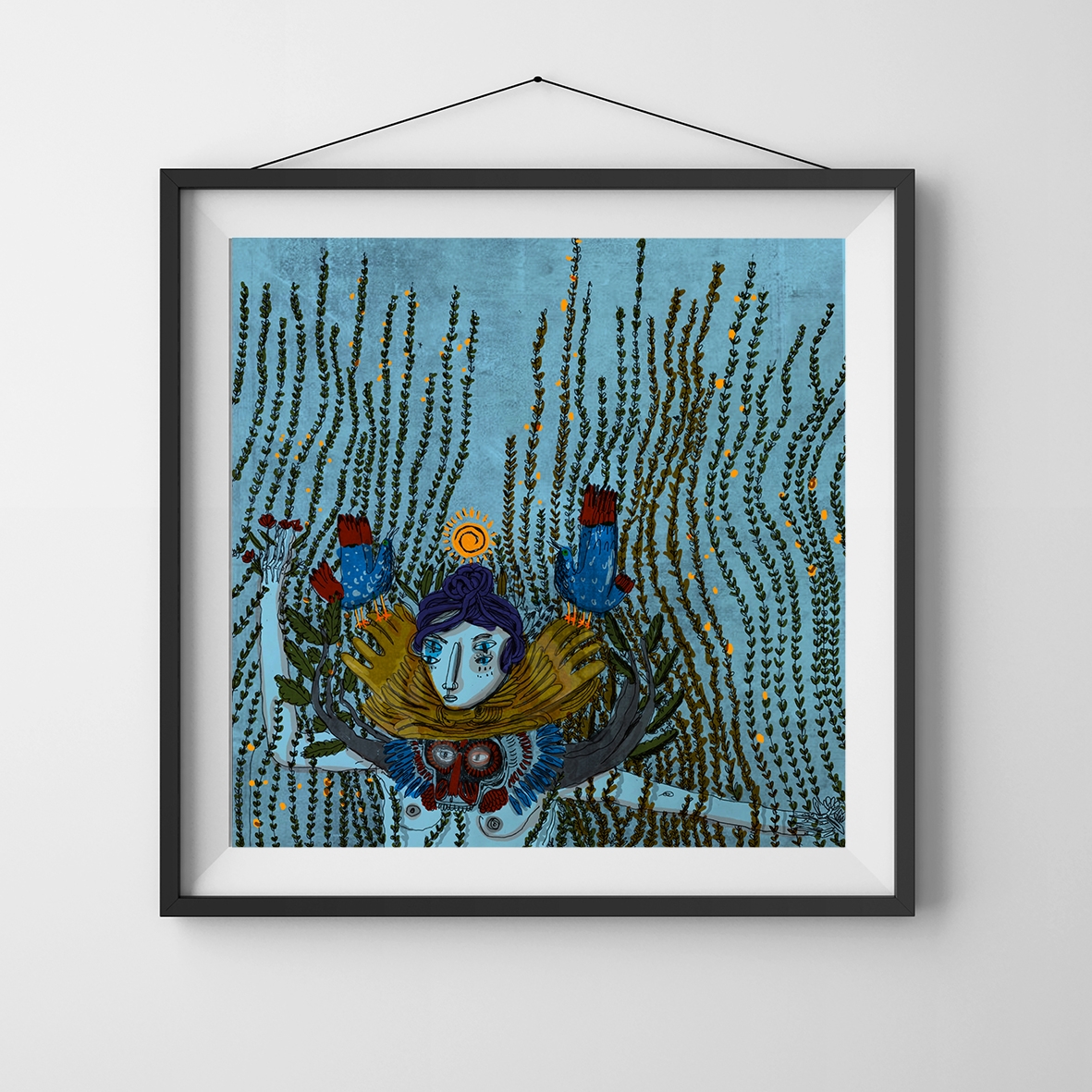 Drawings made with marker, dry and watercolors, followed by giclée quality printing on 210g matte Hahnemühle enhanced paper. This technique; Artistic printing can capture 98% of the colors close to the original colors, and these colors are preserved in a healthy way for about 200 years. *Will be sent with frameless rolls. *Print size is 25x25. *Frame shares are given extra. *Not dimensioned