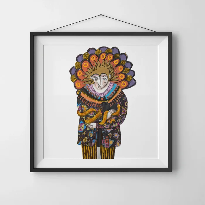 Drawings made with markers, dry and watercolors, then printed in giclée quality on 210g matte Hahnemühle enhanced paper. This technique; Art printing can capture 98% of the original colors, and these colors are preserved for about 200 years in a healthy way. *Will be sent by roll without frame. *Print size is 60x60. *Frame allowances are given extra. *Not dimensioned