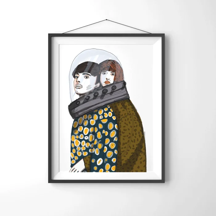 Drawings made with markers, dry and watercolors, then printed in giclée quality on 210g matte Hahnemühle enhanced paper. This technique; Art printing can capture 98% of the original colors, and these colors are preserved for about 200 years in a healthy way. *Will be sent by roll without frame. *Print size is 29x42. *Frame allowances are given extra. *Not measured.