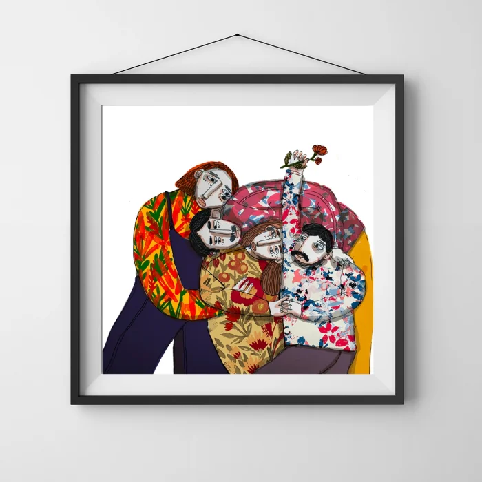 Drawings made with markers, dry and watercolors, then printed in giclée quality on 210g matte Hahnemühle enhanced paper. This technique; Art printing can capture 98% of the original colors, and these colors are preserved for about 200 years in a healthy way. *Will be sent by roll without frame. *Print size is 60x60. *Frame allowances are given extra. *Not dimensioned