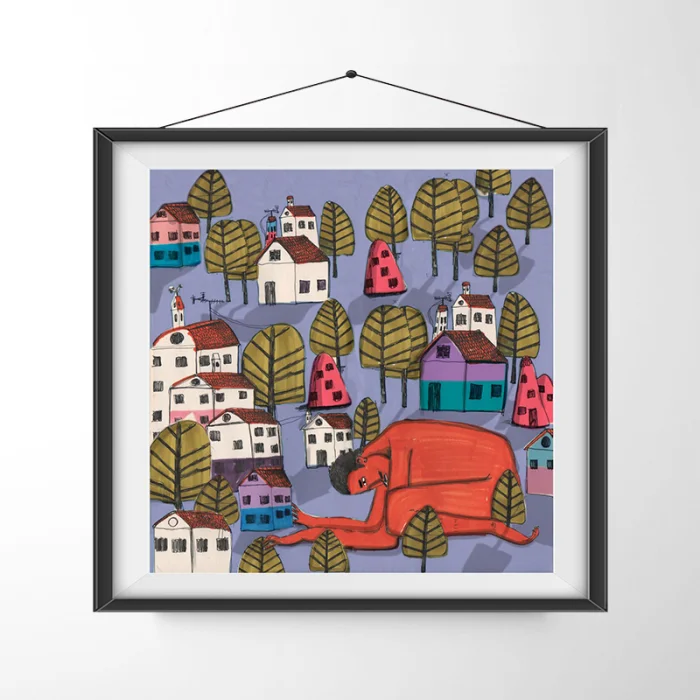 Drawings made with markers, dry and watercolors, then printed in giclée quality on 210g matte Hahnemühle enhanced paper. This technique; Art printing can capture 98% of the original colors, and these colors are preserved for about 200 years in a healthy way. *Will be sent by roll without frame. *Print size is 33x33. *Frame allowances are given extra. *Not dimensioned