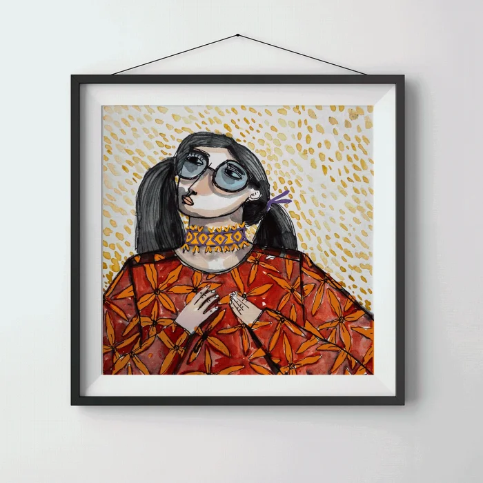 Drawings made with markers, dry and watercolors, then printed in giclée quality on 210g matte Hahnemühle enhanced paper. This technique; Art printing can capture 98% of the original colors, and these colors are preserved for about 200 years in a healthy way. *Will be sent by roll without frame. *Print size is 21x30. *Frame allowances are given extra. *Not measured.