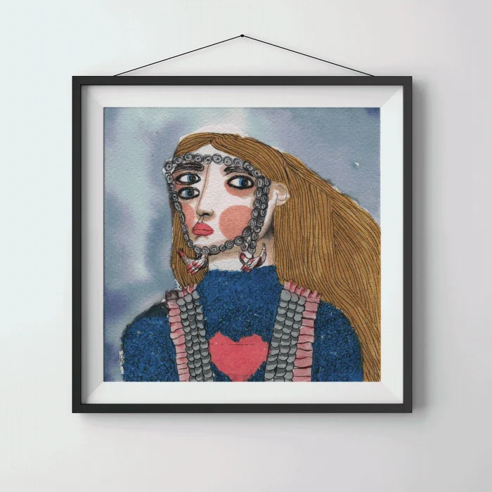Drawings made with markers, dry and watercolors, then printed in giclée quality on 210g matte Hahnemühle enhanced paper. This technique; Art printing can capture 98% of the original colors, and these colors are preserved for about 200 years in a healthy way. *Will be sent by roll without frame. *Print size is 21x30. *Frame allowances are given extra. *Not measured.