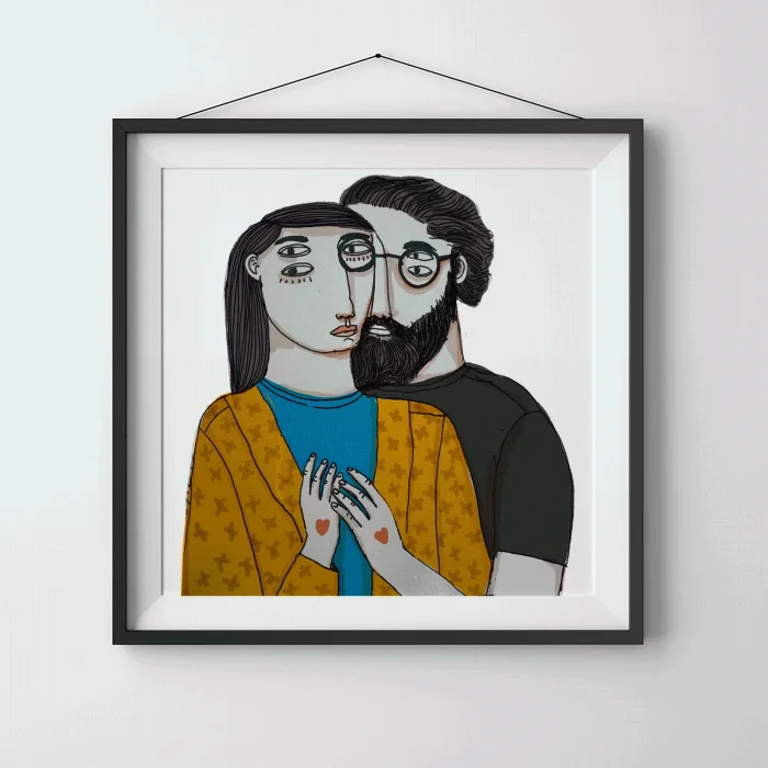 Drawings made with markers, dry and watercolors, then printed in giclée quality on 210g matte Hahnemühle enhanced paper. This technique; Art printing can capture 98% of the original colors, and these colors are preserved for about 200 years in a healthy way. *Will be sent by roll without frame. *Print size is 21x30. *Frame allowances are given extra. *Not measured.