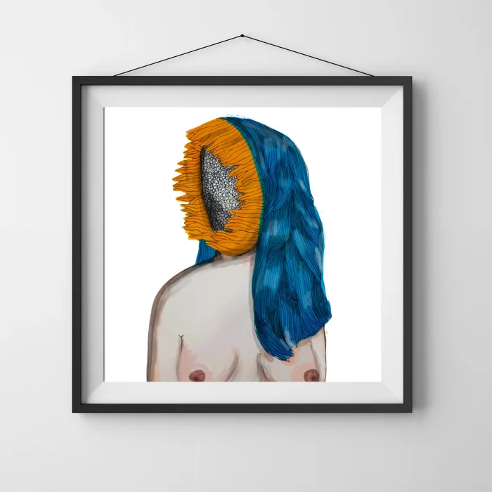 Drawings made with marker, dry and watercolors, followed by giclée quality printing on 210g matte Hahnemühle enhanced paper. This technique; Artistic printing can capture 98% of the colors close to the original colors, and these colors are preserved in a healthy way for about 200 years. *Will be sent with frameless rolls. *Print size is 60x60. *Frame shares are given extra. *Not dimensioned