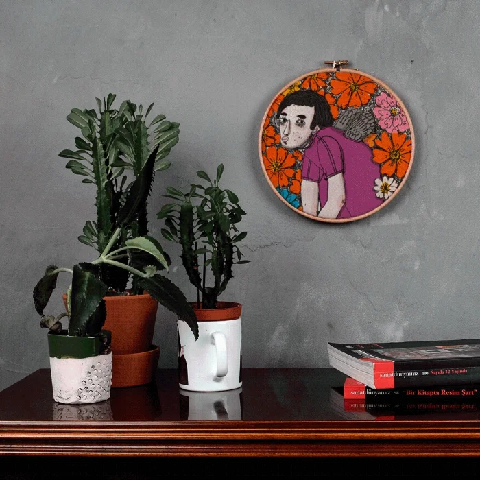 It is produced by stretching fabric on the pulley. Any drawing of Serkan Akyol can be applied.
