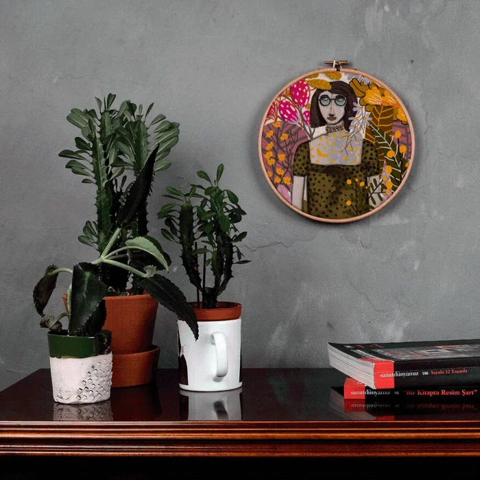 It is produced by stretching fabric on the pulley. Any drawing of Serkan Akyol can be applied.