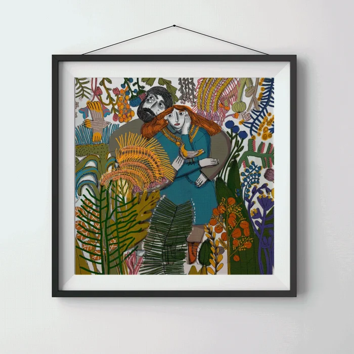 Drawings made with markers, dry and watercolors, then printed in giclée quality on 210g matte Hahnemühle enhanced paper. This technique; Art printing can capture 98% of the original colors, and these colors are preserved for about 200 years in a healthy way. *Will be sent by roll without frame. *Print size is 21x30. *Frame allowances are given extra. *Not measured.