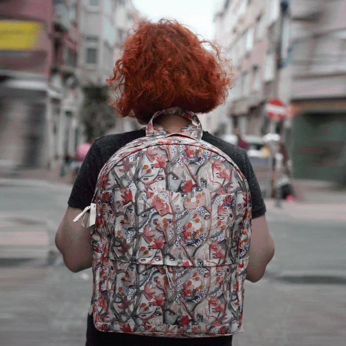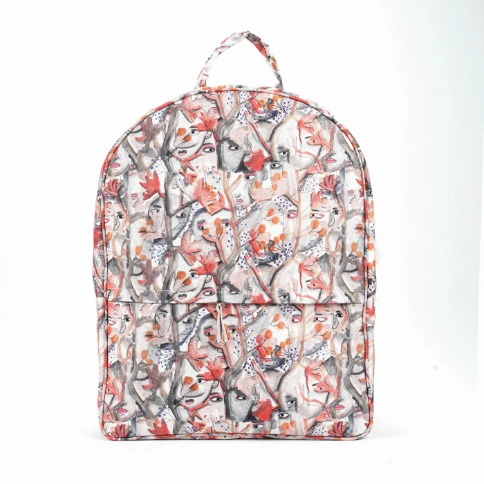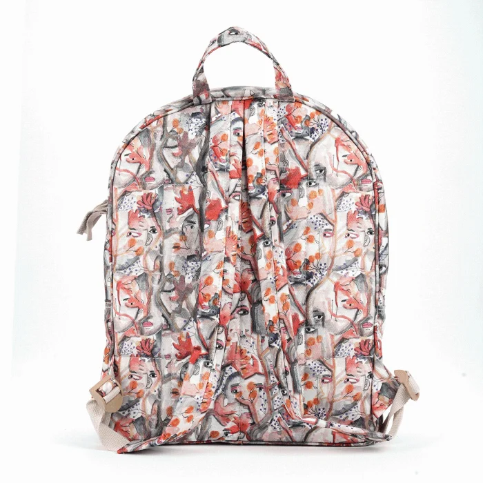 * Made of doubleface linen fabric. * Has two compartments and extra zippered inner pocket * Ergonomic with adjustable handles. *Dimensions; It is 43 x 32 x 11 cm