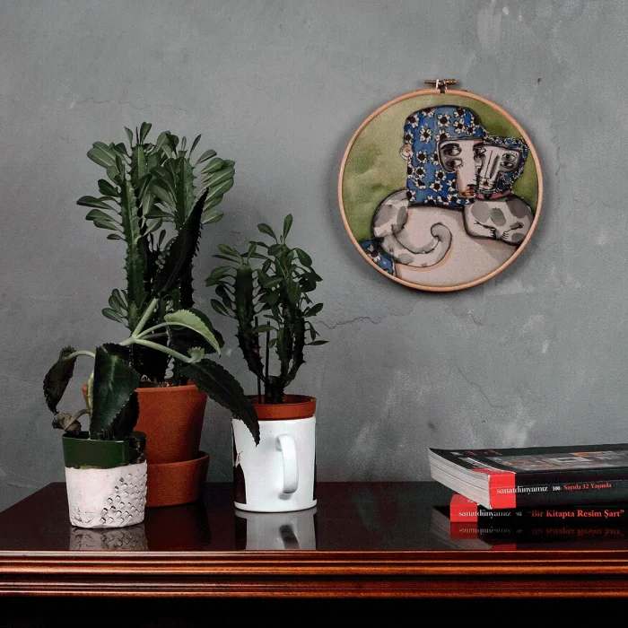 It is produced by stretching fabric on the pulley. Any drawing of Serkan Akyol can be applied.