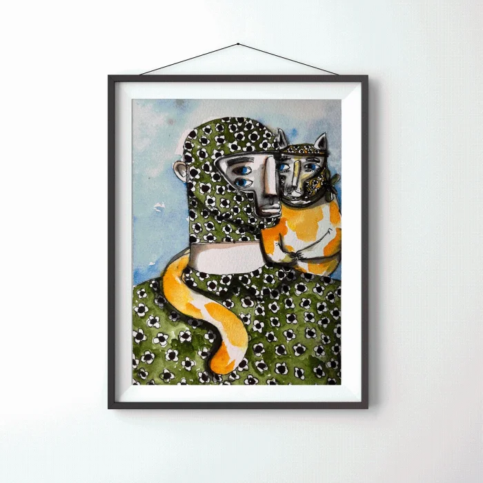 Drawings made with markers, dry and watercolors, then printed in giclée quality on 210g matte Hahnemühle enhanced paper. This technique; Art printing can capture 98% of the original colors, and these colors are preserved for about 200 years in a healthy way. *Will be sent by roll without frame. *Print size is 21x30. *Frame allowances are given extra. *Not measured.