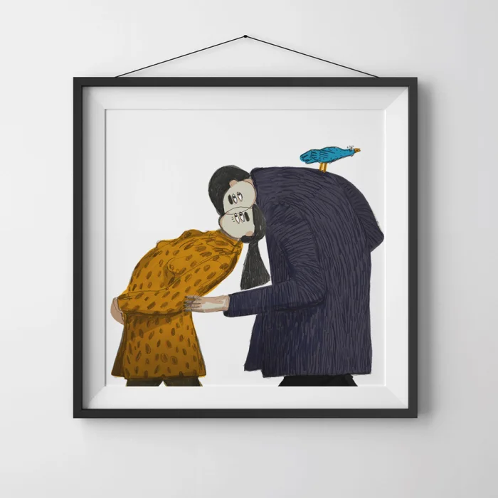 Drawings made with markers, dry and watercolors, then printed in giclée quality on 210g matte Hahnemühle enhanced paper. This technique; Art printing can capture 98% of the original colors, and these colors are preserved for about 200 years in a healthy way. *Will be sent by roll without frame. *Print size is 33x33. *Frame allowances are given extra. *Not dimensioned