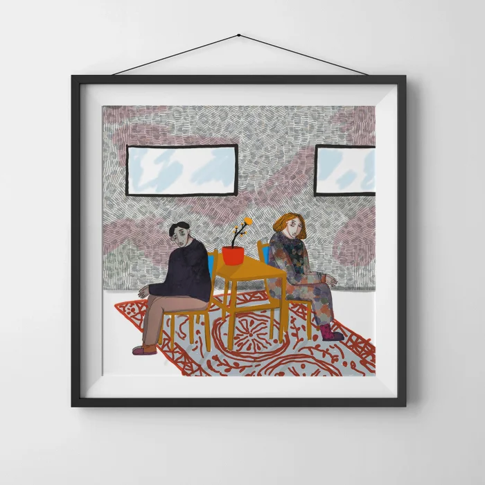Drawings made with marker, dry and watercolors, followed by giclée quality printing on 210g matte Hahnemühle enhanced paper. This technique; Artistic printing can capture 98% of the colors close to the original colors, and these colors are preserved in a healthy way for about 200 years. *Will be sent with frameless rolls. *Print size is 60x60. *Frame shares are given extra. *Not dimensioned
