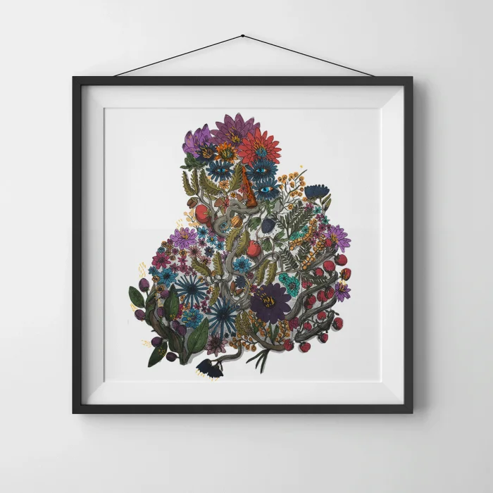 Drawings made with markers, dry and watercolors, then printed in giclée quality on 210g matte Hahnemühle enhanced paper. This technique; Art printing can capture 98% of the original colors, and these colors are preserved for about 200 years in a healthy way. *Will be sent by roll without frame. *Print size is 29x29. *Frame allowances are given extra. *Not dimensioned