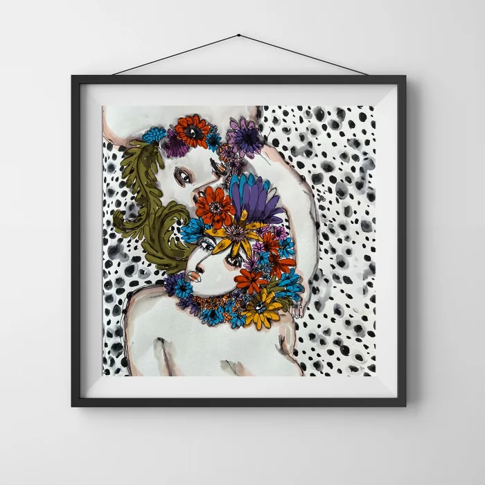 Drawings made with marker, dry and watercolors, followed by giclée quality printing on 210g matte Hahnemühle enhanced paper. This technique; Artistic printing can capture 98% of the colors close to the original colors, and these colors are preserved in a healthy way for about 200 years. *Will be sent with frameless rolls. *Print size is 29x29. *Frame shares are given extra. *Not dimensioned