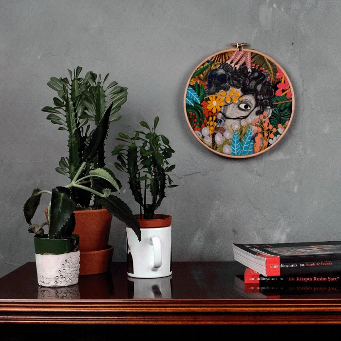 It is produced by stretching fabric on the pulley. Any drawing of Serkan Akyol can be applied.