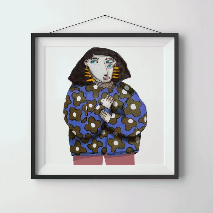 Drawings made with markers, dry and watercolors, then printed in giclée quality on 210g matte Hahnemühle enhanced paper. This technique; Art printing can capture 98% of the original colors, and these colors are preserved for about 200 years in a healthy way. *Will be sent by roll without frame. *Print size is 21x30. *Frame allowances are given extra. *Not measured.