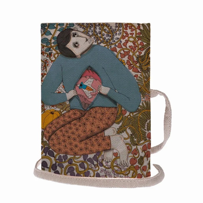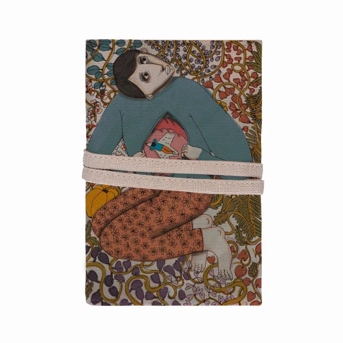 100% Linen Digital Printing Book Case & Pen Holder, Wallet, iPad Case It is used as an organizer in the bag, it has a book, ipad mini, phone, pen and a zippered compartment. Content: 1 Book Case 1 Sketchbook (A5 size notebook) 2 Wooden Pencils The drawings belong to "@serkanakyol". PRODUCT: HUMAN BOOK CASE WHOSE HEART IS ALWAYS WINTER DESIGNER: SERKAN AKYOL