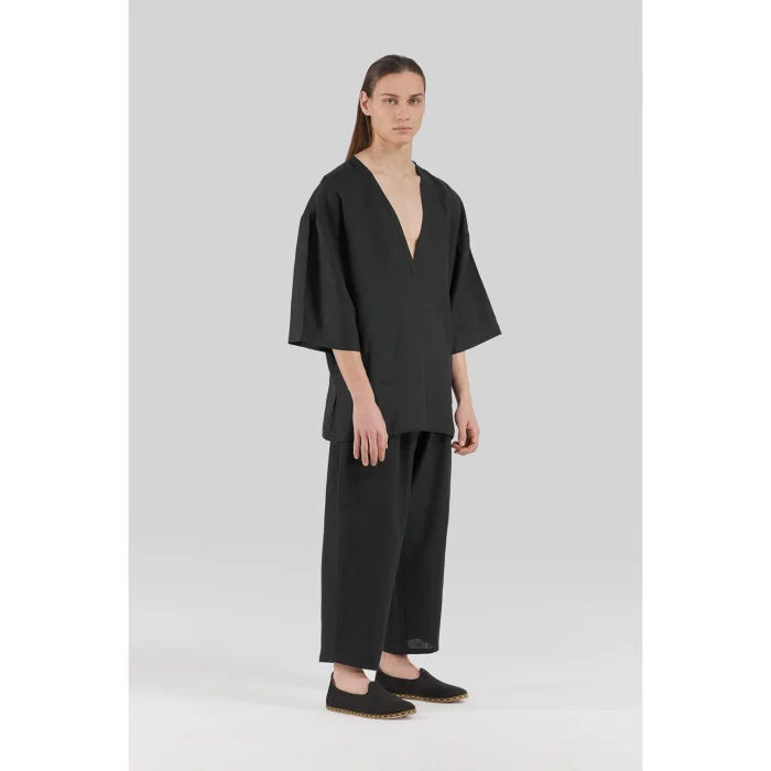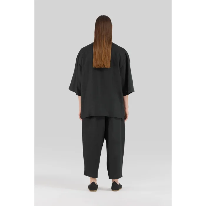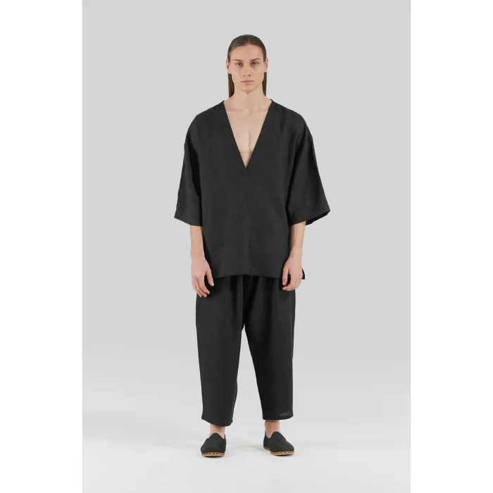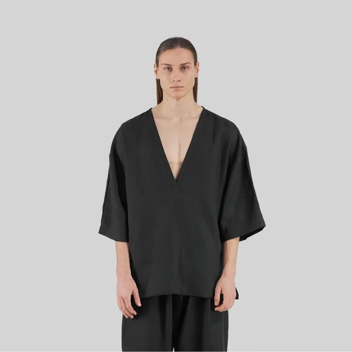 Black 100% Linen Deep V Neck Oversized Men's T-shirt