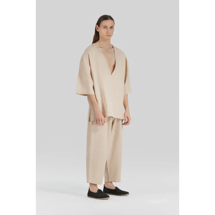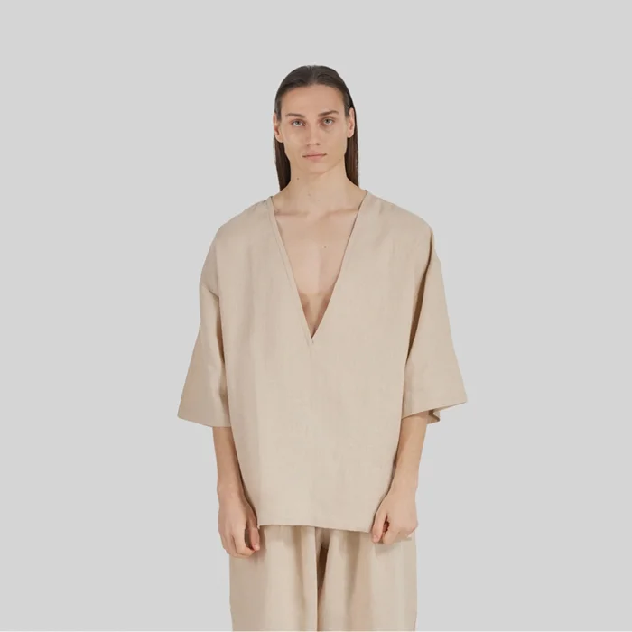 Product: 100% Linen Deep V-neck Oversized T-shirt