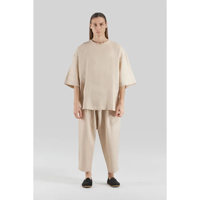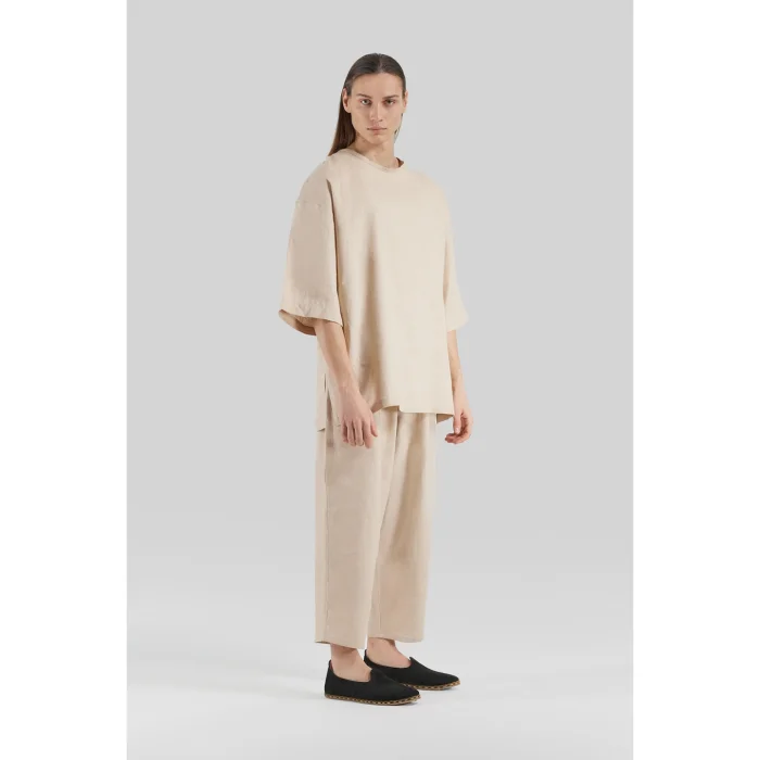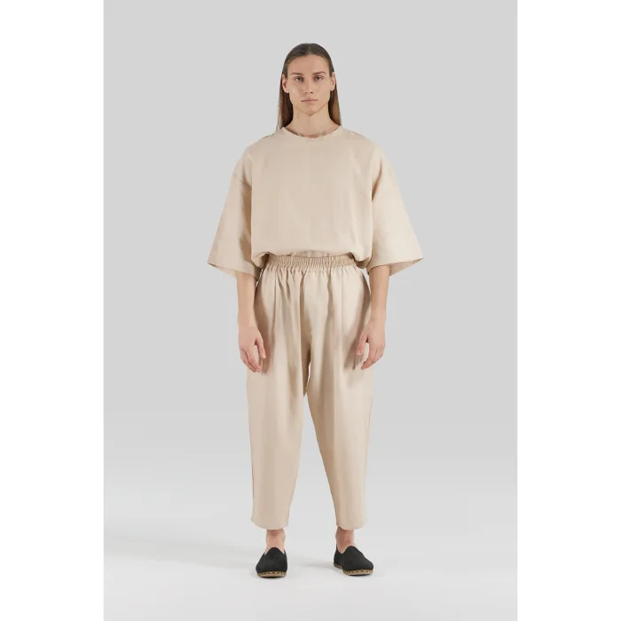 Product: 100% Linen Elastic Waist Wide Leg Trousers