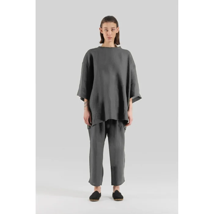 Product: 100% Linen Elastic Waist Wide Leg Trousers