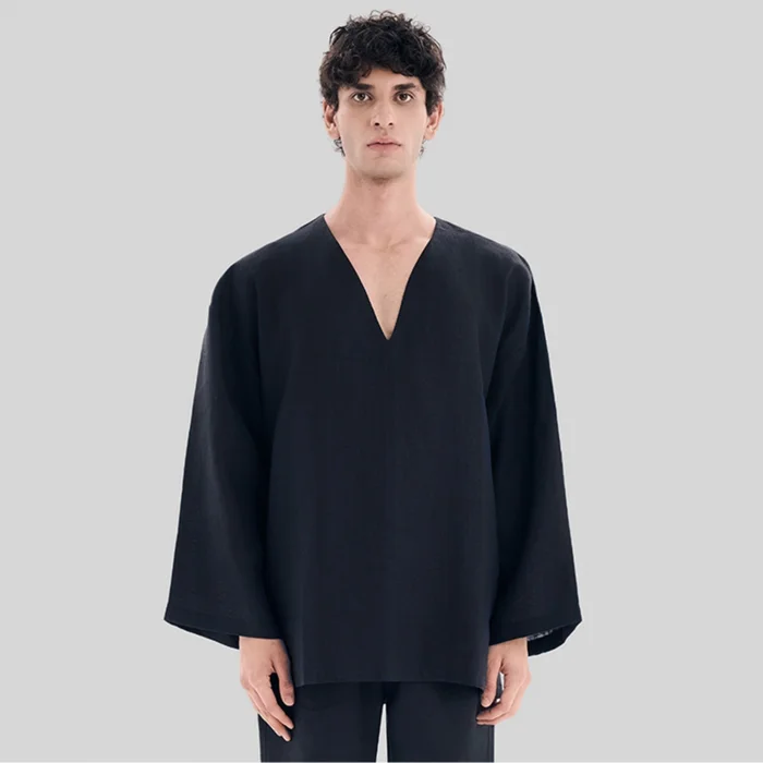 White 100% Linen V Neck Oversized Unisex T-shirt