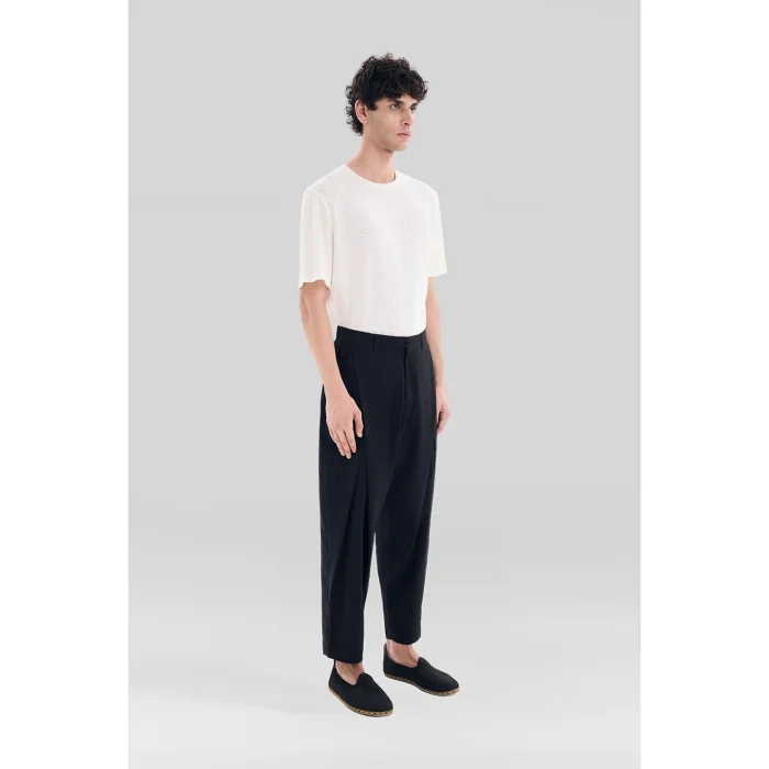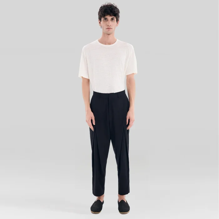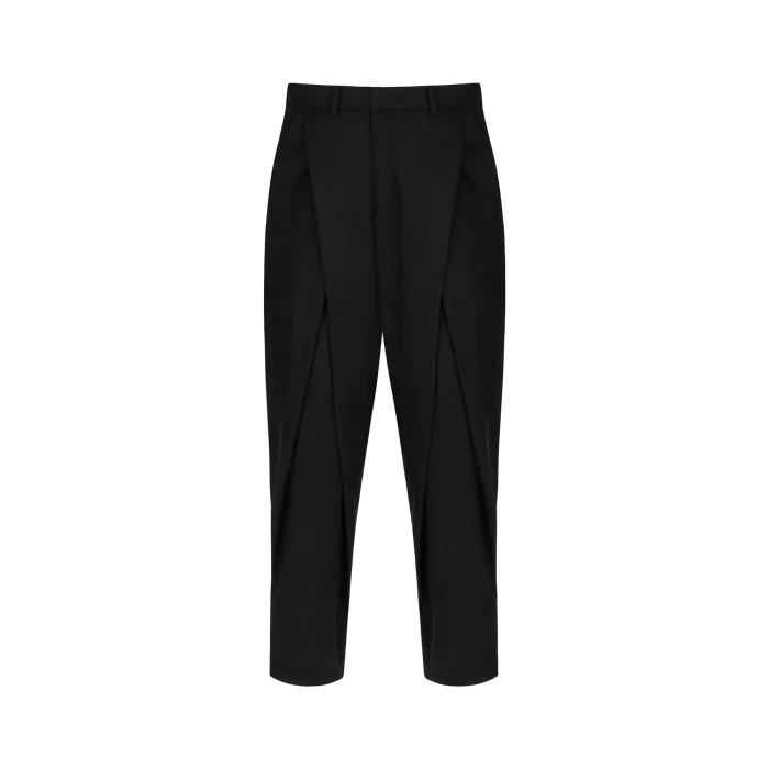 Black 40% Pes 60% Nylon Double Pleated Skinny Leg Unisex Trousers