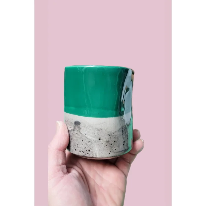Timeless ceramic cup, mug in amorphous form, suitable for hot and cold food, with concrete effect at the bottom, option on the top, very enjoyable to drink with its ergonomic attitude.