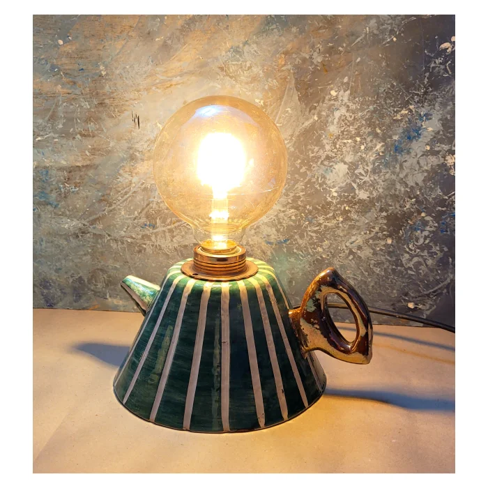 Teapot-shaped, completely handmade and hand-painted, ceramic lighting, decorative table, bedside lamp, decorative lighting object.