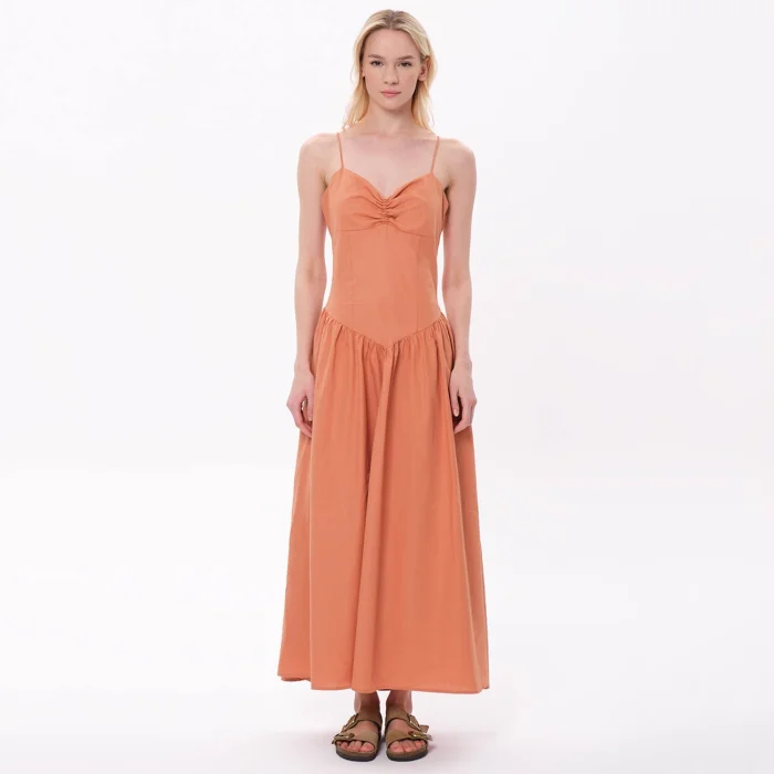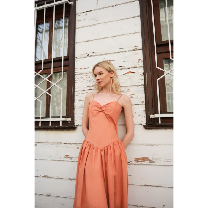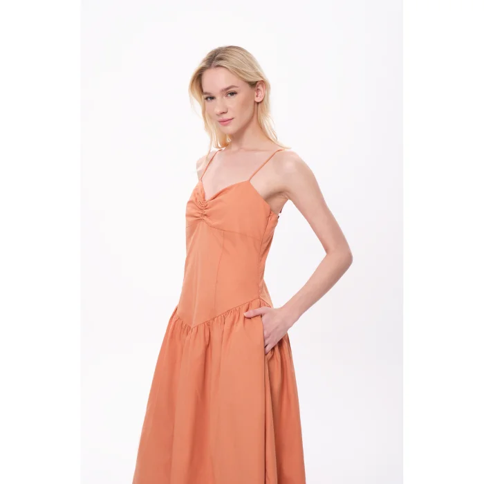 100% cotton soft touch poplin dress. Top adjustable strap with two side pockets