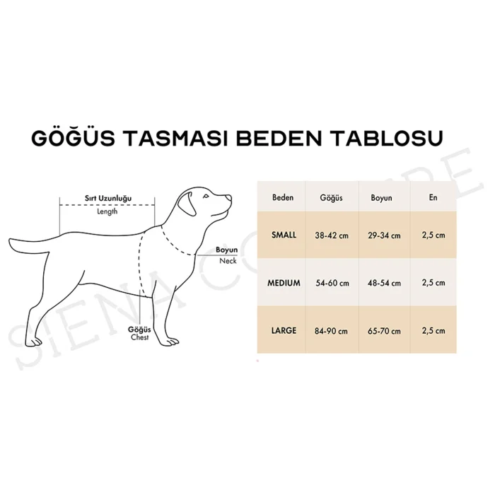 Small: Bust 38-42 cm / Neck 29-34 cm / Width 2.5 cm