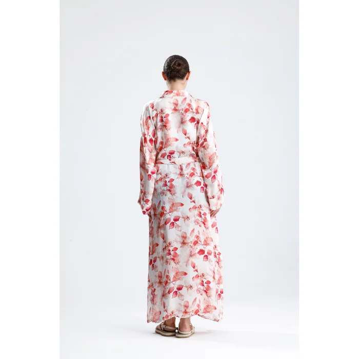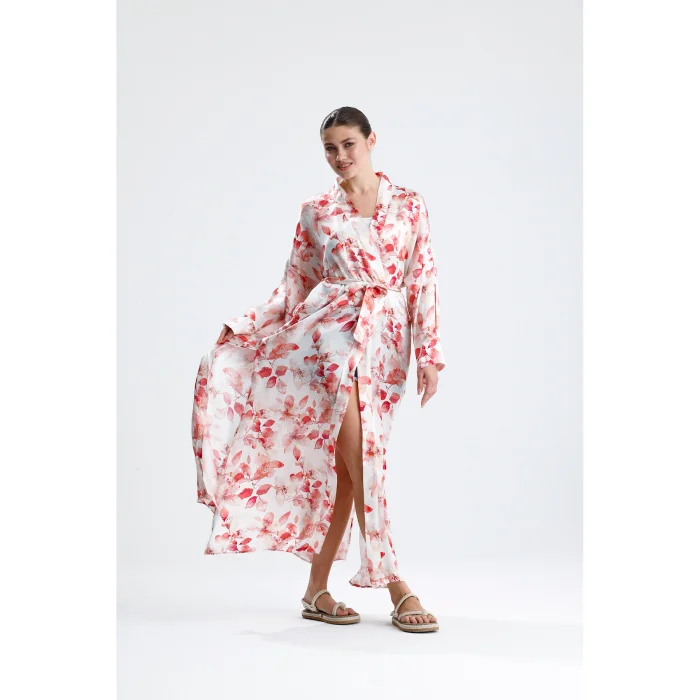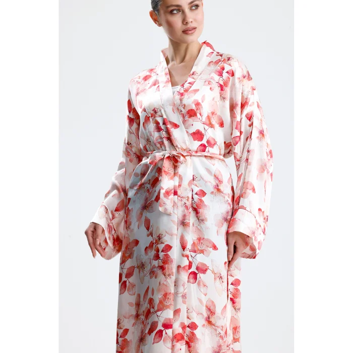 Made from 100% pure silk, this kimono combines timeless elegance and natural comfort. While its soft texture gently touches your skin, it offers ideal use in all seasons thanks to the breathable structure of silk. It hugs you with its light and fluid fabric and gives freedom to your body.