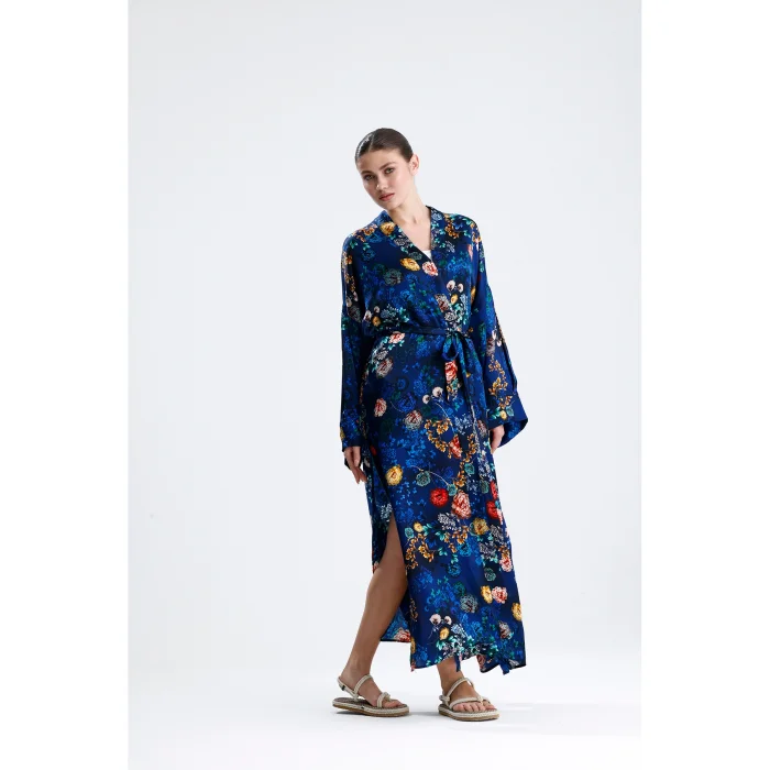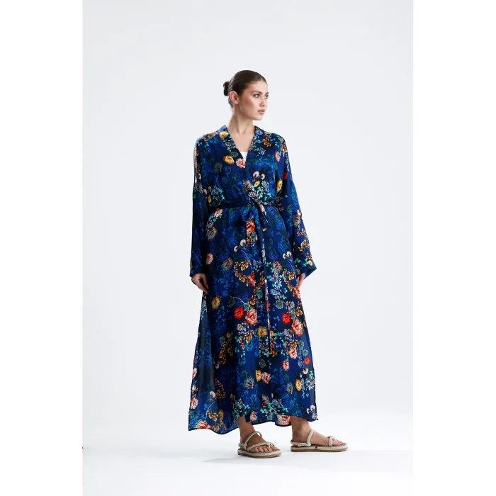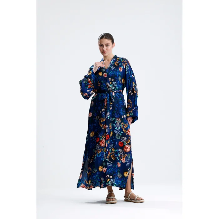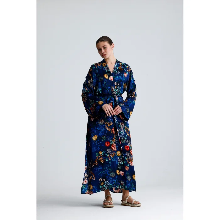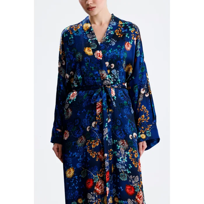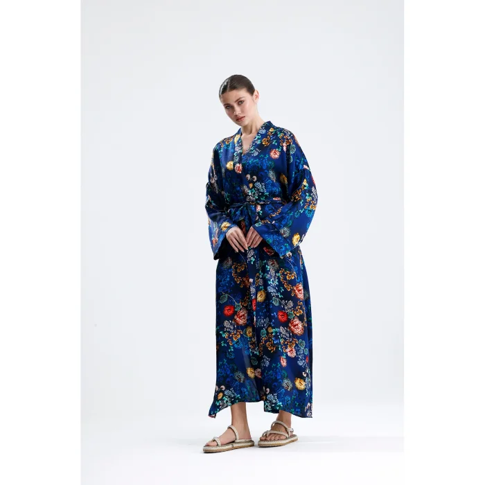 Made from 100% pure silk, this kimono combines timeless elegance and natural comfort. While its soft texture gently touches your skin, it offers ideal use in all seasons thanks to the breathable structure of silk. It hugs you with its light and fluid fabric and gives freedom to your body.
