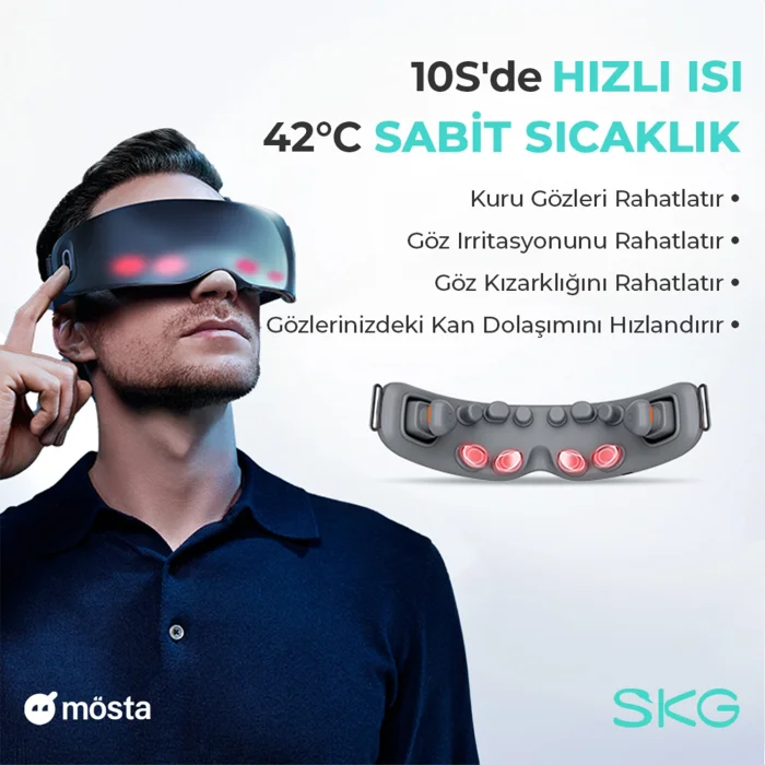 SKG E7 Special Heat Therapy-Thermotherapy Eye Massager/Robot: Traditional Shiatsu Massage Therapy, Vibrating, Therapy with Music, Sixth Chakra Activation, Temple Massage, Eye Contour, Blood Circulation, Wrinkle Remover, REM Sleep Enhancer The SKG E7 Special Heat Therapy-Thermotherapy Eye Massager/Robot is an innovative device designed to relieve eye strain and improve overall eye health. Combining traditional Shiatsu massage therapy with modern technology, this massager offers vibration and heat therapy to relax the muscles around the eyes, increase blood circulation and reduce wrinkles. It is also equipped with unique features such as therapy music and sixth chakra activation. It is an ideal solution for anyone who is overwhelmed by the hectic pace of work and daily life. Important Features 1. 2-in-1: Vibration & Heat Therapy Rhythmic Vibration: Relaxes muscles and increases blood circulation around the eyes. 42°C Constant Temperature: Relaxes the eyes and relieves fatigue. 2. 95% Fit Face Shape 2 Adaptive Temple Massage Head: Rotates to adjust the width of the forehead. 6 Bionic Liquid Silicone Massage Head: It is skin-friendly and soft. 3. Smart & Portable Audio Broadcasting: Provides ease of use. 5S Quick Warm-up: Offers instant relief. 2.5 Hours Battery Life: Provides long-term use. One-Touch Control: It is simple to use. 4. Point-to-Point Massage 8 Silicone Knots: Gently massages your eyes. 4 Skin-Friendly Steel Heated Knots: Reduces wrinkles around the eyes and improves blood circulation. 5. Music Therapy Bluetooth Connection: You can relax your eyes by listening to your own playlist. Q&A 1. How does the SKG E7 eye massager work? The SKG E7 relaxes the muscles around the eyes and increases blood circulation using rhythmic vibrations and heat therapy. 2. What face shapes is the SKG E7 suitable for? The device is designed to fit 95 percent of all face shapes. 3. What is the battery life of the SKG E7? The battery life of the device is 2.5 hours, during which time it provides uninterrupted use. 4. How to control the device? The SKG E7 can be controlled with a single button and provides ease of use thanks to its voice broadcasting feature. 5. How long does it take for the heating feature of the appliance to kick in? The SKG E7 has a quick warm-up feature within 5 seconds. 6. How many different massage modes are available in the device? The device has four different massage modes: Vitality, Soothing, Sleep and Eye Exercise. 7. Does the SKG E7 have music playback? Yes, you can listen to music from the device thanks to the Bluetooth connection. 8. What do the vibration modes of the device do? Vibration modes relax the muscles around the eyes and increase blood circulation, providing relaxation. 9. In what situations can I use the SKG E7? You can use it in situations of long-term work, entertainment, study, and staying awake. 10. How to clean the device? For cleaning the device, it is enough to wipe it with a damp cloth. 11. How long is the warranty period? 2 years Technical Specifications Dimensions: 22.5 cm x 15.5 cm x 10 cm Color: Black Mobile App Compatibility: iOS & Android Material Quality: High quality plastic and silicone Battery Life: 2.5 hours Charging Time: 3 hours Weight: 0.5 kg Heat Therapy: 42°C constant temperature Vibration Modes: 4 different modes Audio Broadcasting: Available Bluetooth Connection: Available With this comprehensive article, you can learn all the details about the SKG E7 Special Heat Therapy-Thermotherapy Eye Massage Tool/Robot and make a purchase decision with peace of mind.