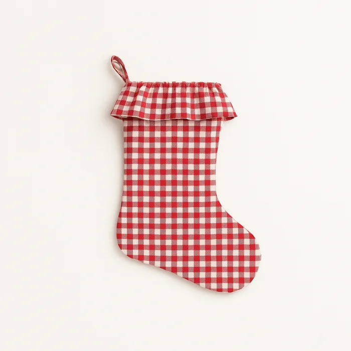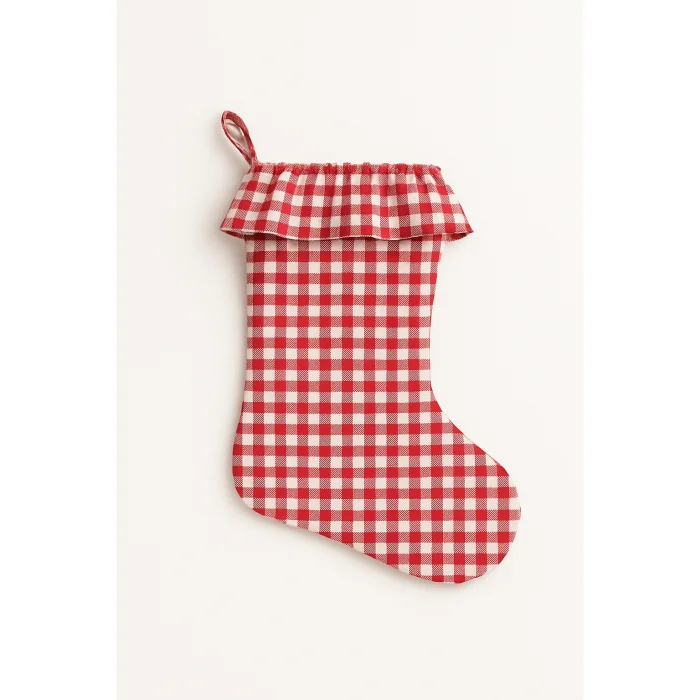 Bringing the spirit of the new year to your home with a simple yet warm touch, this red and white gingham Christmas stocking stands out with its natural fabric texture and elegant ruffle detail.