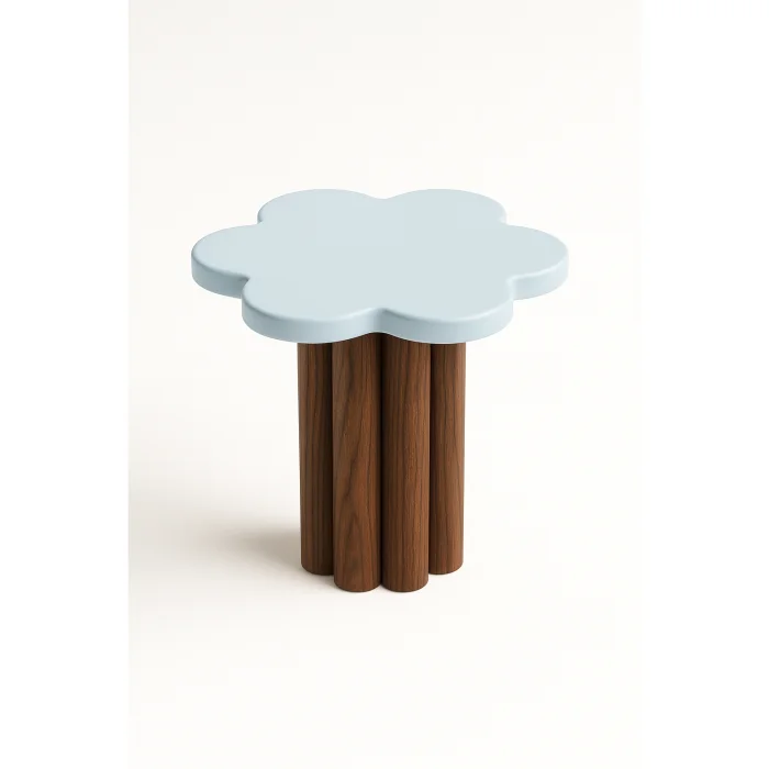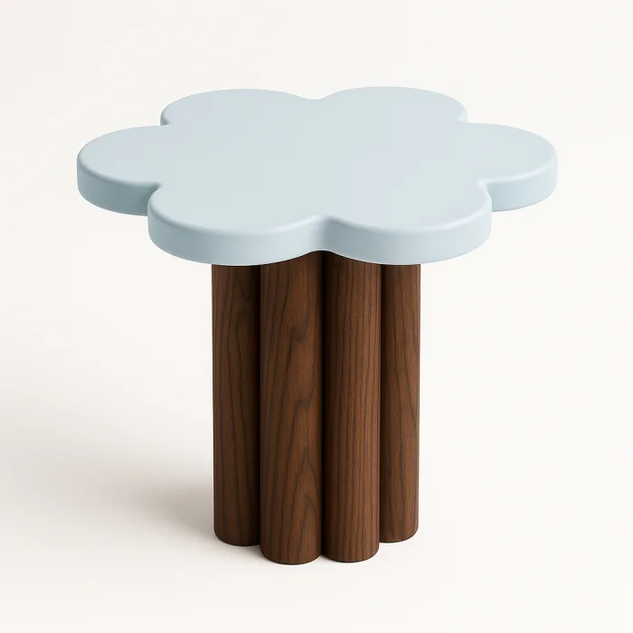 Design: Minimalist, smooth-surfaced, asymmetrical flower-shaped structure