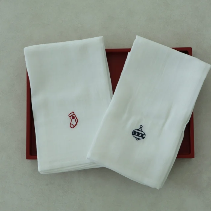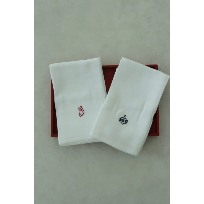 Embroidered Muslin Napkin With Sock And Decorative Stitching