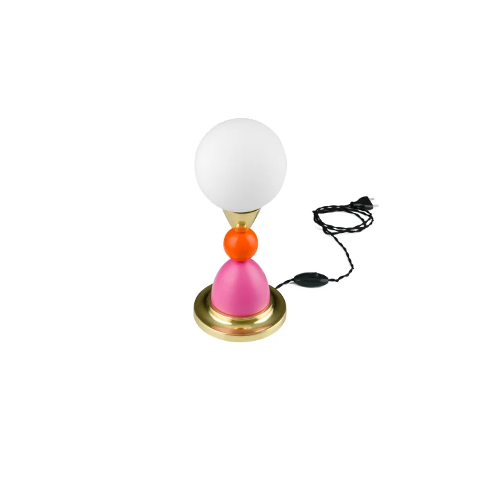 Function: Table Lamp Design: Sodd Design Material: Wood, Lacquer Paint, Textile Cable, G9 Lamp Holder, G9 Bulb, Brass, Glass Color: Orange-Ral 2004 / Pink-Ral 4003 Dimensions: 14x29 cm Note: Product colors may differ from phone and computer screens. You can check the colors from the Ral Chart, which is an international color chart.