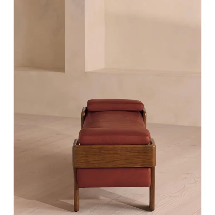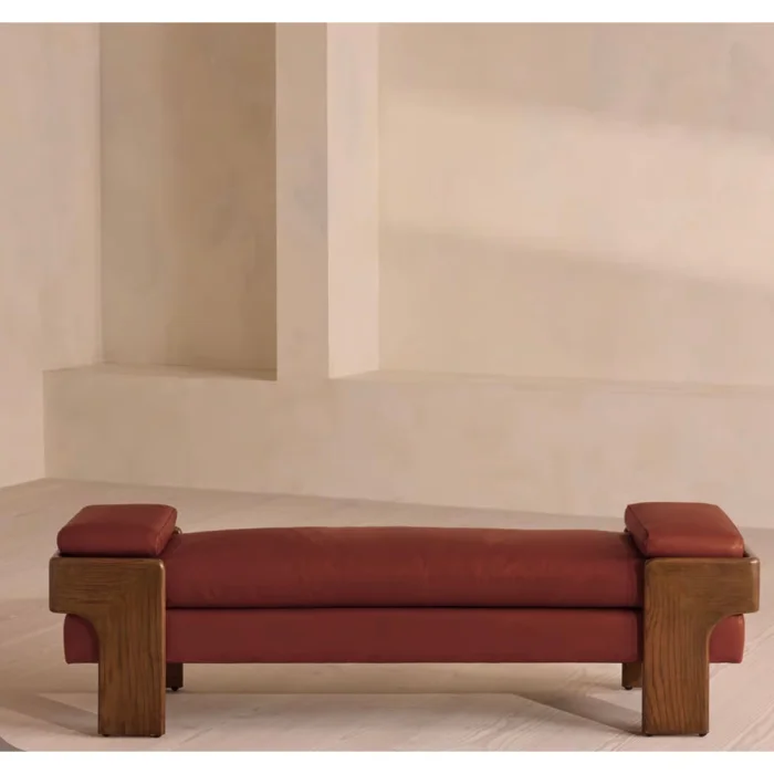 Design: Minimalist lines, natural oak legs and elegant stitching details