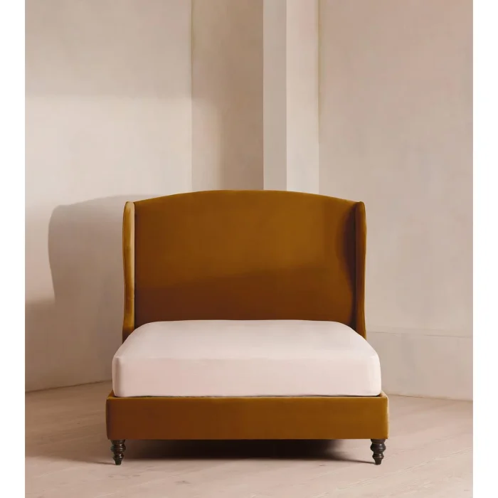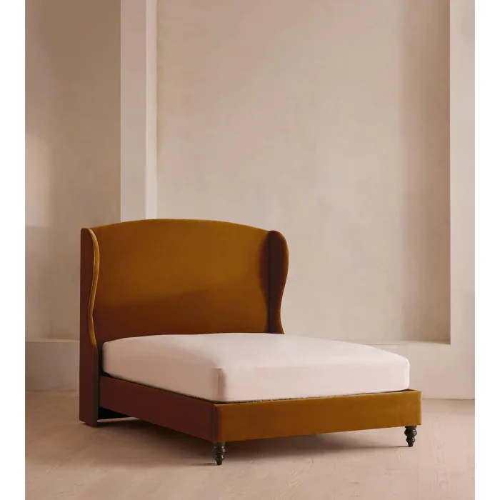 Headboard: High headboard with oversized wings, voluminous and soft form