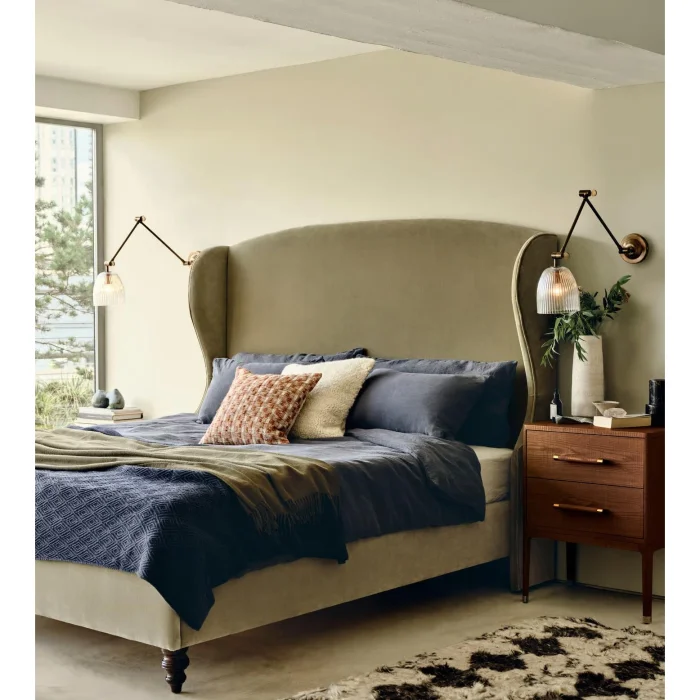 • Headboard: High headboard with oversized wings, voluminous and soft form