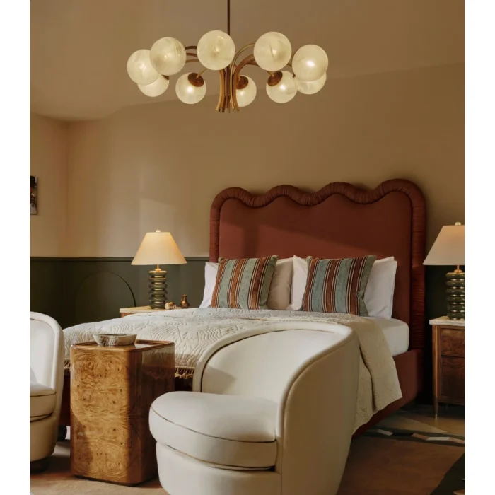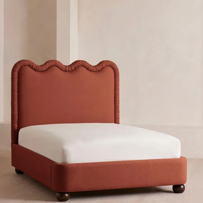 form: High headboard with wavy silhouette, low body structure