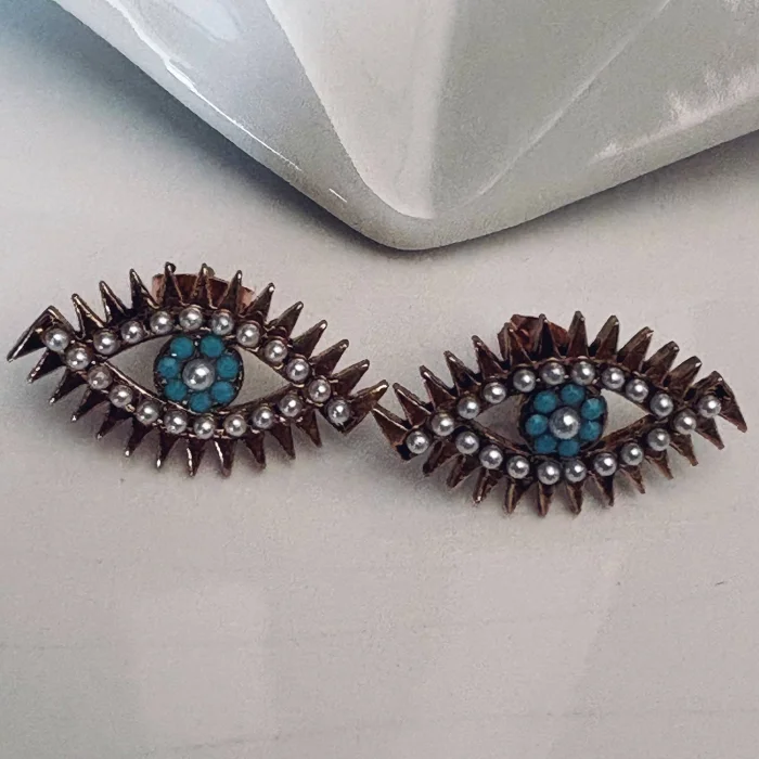 It was designed by embroidering baroque pearl and turquoise stone on imported bronze