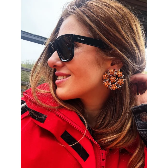 The product is designed using orange swarovski stone on a bronze body.