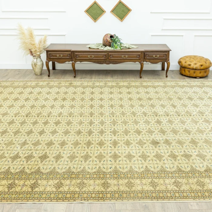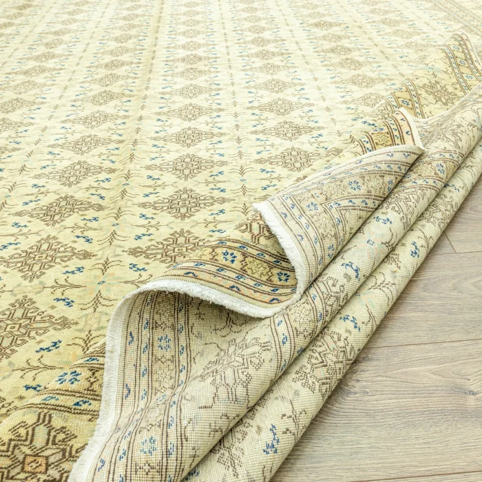 With their flamboyant and aesthetic designs, our Soho Antiq carpet models will add a new atmosphere to your living space! Our long-lasting carpet model consists of completely natural cotton and wool and is woven with a special hand weaving technique. This carpet, which we produce with the skills that make the carpet model special and ensure that it maintains its quality over the years, has a thickness of 1 to 3 cm and its length is 305 x 423 cm. Thanks to the shaving process applied to the carpet after weaving, the pile height has been reduced to a minimum, which gives the carpet a smooth and modern appearance. The main color of the carpet you choose among the carpet models with many color options is green tones. In addition, other colors found in carpet design are brown, beige and multicolored. Soho Antiq features carpets with cultural and traditional features. This carpet model, which has come from the past to the present, bears traces of the history of the 1980s and has cultural colors and touches, especially from Kayseri, Bünyan region. It is possible to see all these traditional touches in the rustic pattern on the carpet.