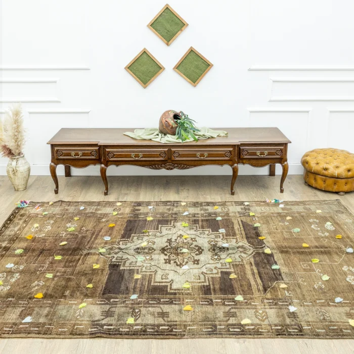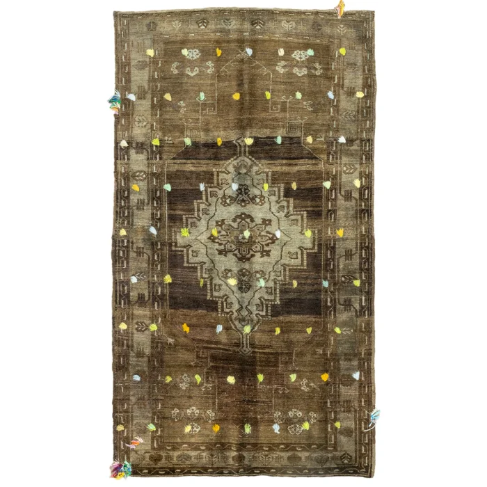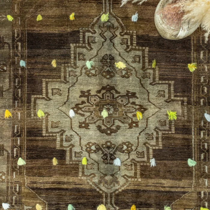 With their flamboyant and aesthetic designs, our Soho Antiq carpet models will add a new atmosphere to your living space! Our long-lasting carpet model consists of completely natural cotton and wool and is woven with a special hand weaving technique. This carpet, which we produce with the skills that make the carpet model special and ensure that it maintains its quality over the years, has a thickness of 1 to 3 cm and its length is 172 x 301 cm. The main color of the carpet you choose among the carpet models with many color options is brown. In addition, other colors found in the carpet design are green, yellow and multicolored. Soho Antiq features carpets with cultural and traditional features. This carpet model, which has come from the past to the present, bears traces of the history of the 1960s and has cultural colors and touches, especially from the Kars region. In addition to all these traditional touches, the pon pons added later add a modern approach to carpet design. It is possible to see this harmony in the tulle pon pons on the traditional Kars pattern on the carpet.