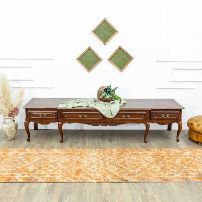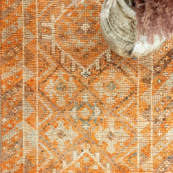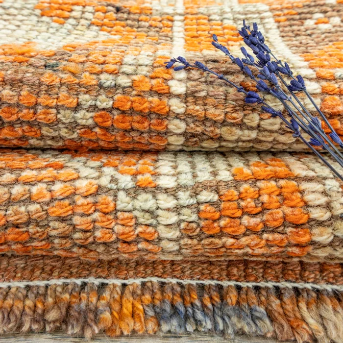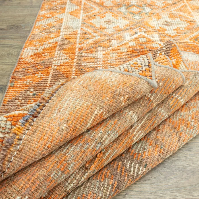 Embark on a nostalgic journey with Soho Antiq and discover the fascinating world of traditional runner carpet models! This special runner carpet model, each of which is skillfully hand-woven, reflects the unique texture of natural wool. While orange, chosen as the main color, emphasizes the eye-catching appeal of the design, it offers a harmonic integrity with the brown, green and other colors it contains. The origin of the design of this runner model is based on the rich traditional touches of Eastern Anatolia. In addition, it reflects the unforgettable style of the 1980s, offering a special nostalgic atmosphere.