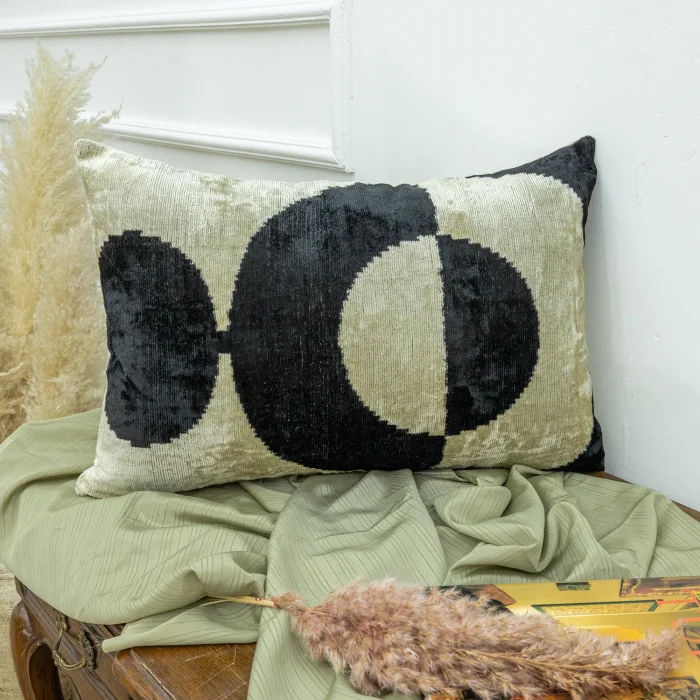Ikat velvet pillows are pillows produced with the ikat patterning technique and made using velvet and fabric. These pillows offer both the visual appeal of the ikat pattern and the softness and luxurious feeling of velvet fabric.